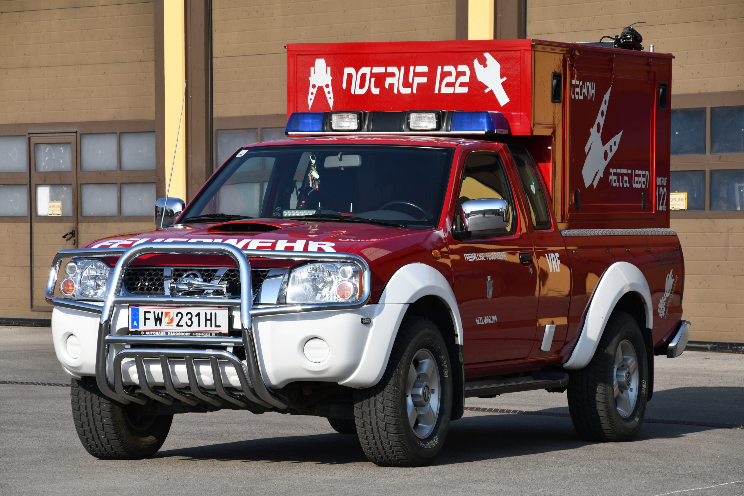 Das Vorausrüstfahrzeug wurde im September 2011 als „Fahrzeug mit Schwerpunkt Menschenrettung“ in Dienst gestellt. Es ist in der Ausrückeordnung der Freiwilligen Feuerwehr Hollabrunn das erste Fahrzeug bei Verkehrsunfällen mit Menschenrettung sowie bei Türöffnungen. Seit 9. Oktober 2014 steht in diesem Fahrzeug ein Defibrillator (Lifepack Express) zur Verfügung.