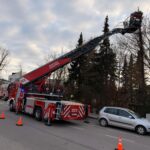 Kurze Zeit später folgte ein weiterer T1 – Objekt/Baum umgestürzt. Ein entwurzelter Baum drohte auf die Straße sowie auf ein parkendes Fahrzeug zu stürzen. Nach der Lenkererhebung durch die Polizei wurde das betroffene Fahrzeug von der Besitzerin entfernt. Anschließend wurde der Baum mithilfe der Drehleiter fachgerecht abgetragen und die Gefahrenstelle beseitigt.