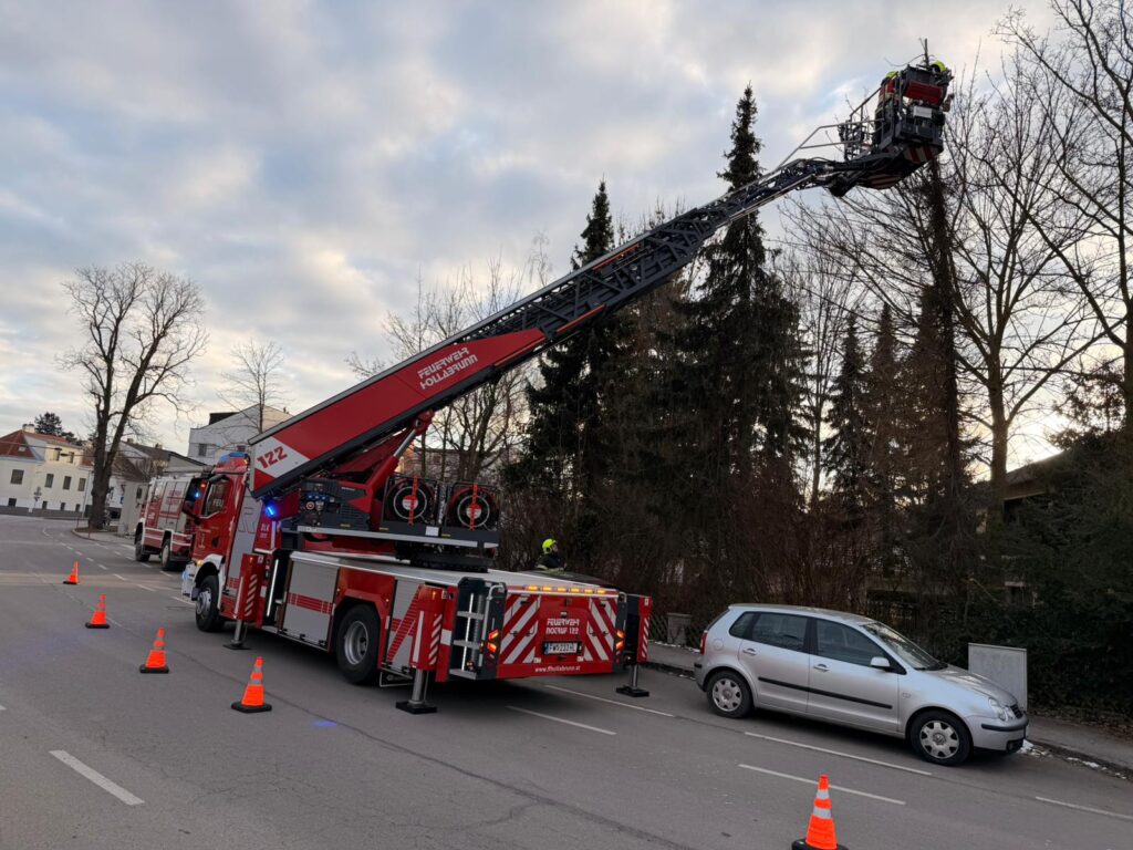 Kurze Zeit später folgte ein weiterer T1 – Objekt/Baum umgestürzt. Ein entwurzelter Baum drohte auf die Straße sowie auf ein parkendes Fahrzeug zu stürzen. Nach der Lenkererhebung durch die Polizei wurde das betroffene Fahrzeug von der Besitzerin entfernt. Anschließend wurde der Baum mithilfe der Drehleiter fachgerecht abgetragen und die Gefahrenstelle beseitigt.