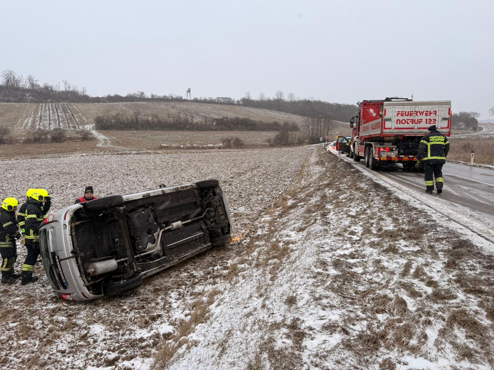 PKW-Bergung nach Verkehrsunfall bei Schneeverhältnissen